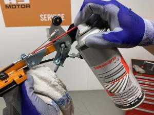 Po czyszczeniu wszystkie połączenia, zawiasy i dźwignie obsługi można teraz nasmarować wielofunkcyjnym olejem bez żywicy. Należy pamiętać, że żaden środek smarny, olej ani wosk nie powinny dostać się na paski napędowe lub klinowe, koła pasowe, okładziny hamulcowe lub suche sprzęgła.