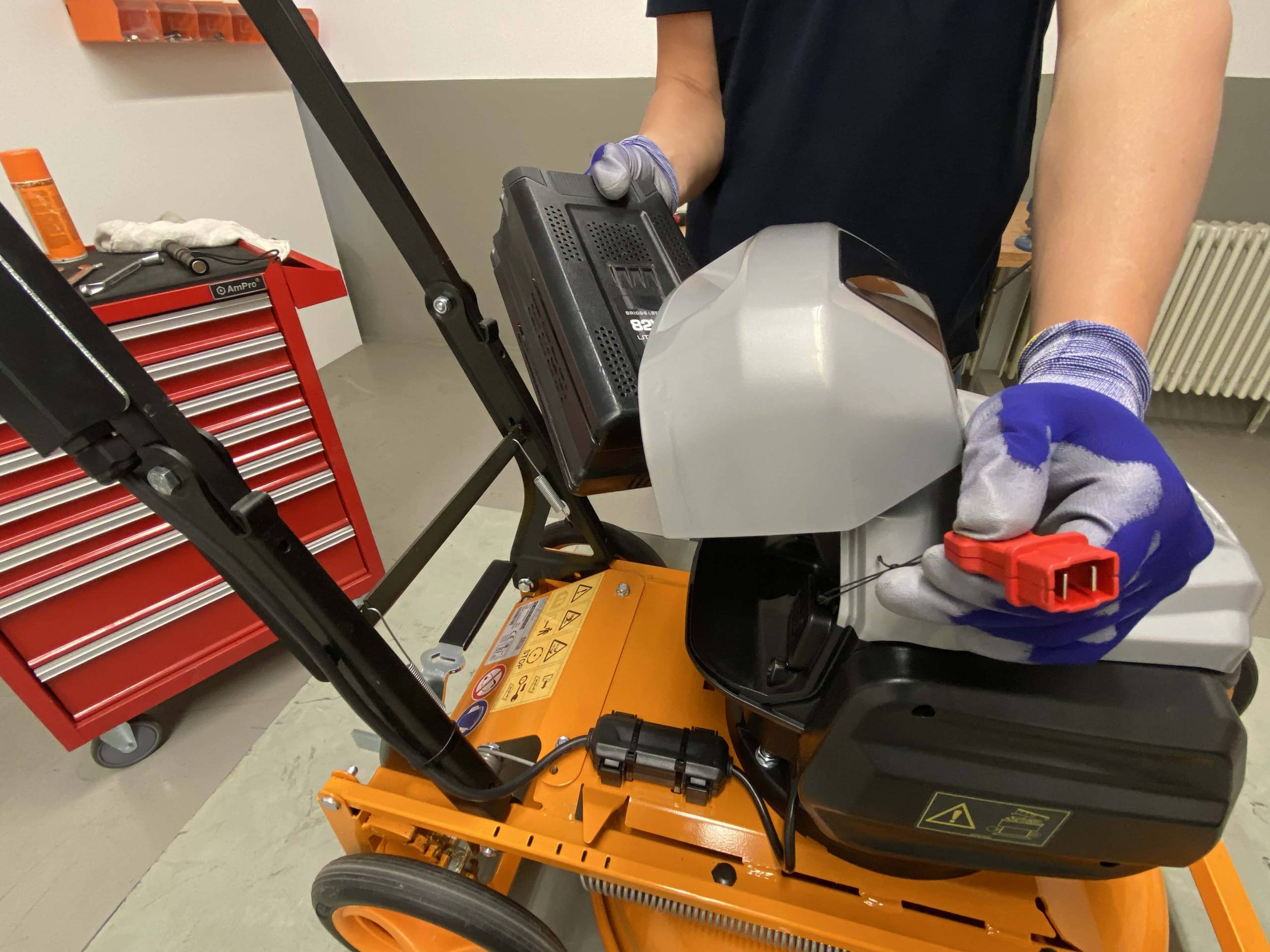 Każdy przegląd rozpoczyna się od niezbędnych środków ostrożności. Na przykład, przed wykonaniem jakichkolwiek działań, należy wyeliminować możliwość przypadkowego uruchomienia maszyny. Z tego powodu, w kosiarkach elektrycznych należy odłączyć główne wtyczki. W maszynach zasilanych bateryjnie należy usunąć baterie i, jeśli to konieczne, aktywować wyłącznik lub usunąć klucz bezpieczeństwa. W maszynach z napędem silnikowym z rozruchem linkowym należy usunąć złącze świecy zapłonowej. Aby być po bezpiecznej stronie z kosiarkami jezdnymi, należy usunąć klucz zapłonu i, jeśli to możliwe, odłączyć baterię przed rozpoczęciem pracy na maszynie. Zamknij zawory paliwa i wentylację zbiornika. Podstawowo, należy zapewnić dobrą wentylację i maszynę należy ustawić bezpiecznie. Zapewnij, że w pobliżu nie ma źródeł zapłonu i noś rękawice odporne na cięcie.